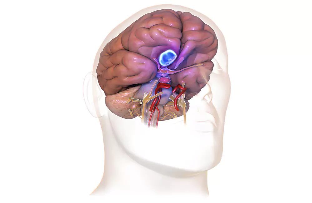 Brain tumors result from abnormal cell growth in or around the brain, categorized as malignant (cancerous) or benign (non-cancerous). Malignant tumors spread rapidly, while benign ones grow slowly and are generally non-fatal. They can affect brain function if they become large. Tumors may arise in various brain areas, including the pituitary and pineal glands, and brain membranes. Primary tumors develop in the brain, while metastatic tumors spread to other body parts, often through the bloodstream. Some tumors may also form on the spinal cord. Meningiomas are slow-growing, non-cancerous brain tumors that develop on the meninges, the protective layers covering the brain and spinal cord. They primarily affect women and the elderly and can lead to serious disability if left undiagnosed. Though the causes remain unknown, genetic factors and chromosomal changes may play a role. While most meningiomas are non-cancerous, some can be malignant and spread to nearby tissues or other parts of the body. Symptoms vary depending on the tumor's location and commonly include neurological issues such as blurry vision, severe morning headaches, hearing problems, memory loss, and muscle weakness.